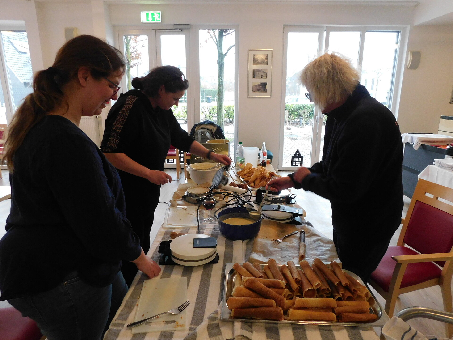 Mit Sekt, alkoholfreien Sekt, Orangensaft und allen, was das Herz begehrte, wurde gelacht, geplaudert und der Jahresbeginn gebührend gefeiert. Kulinarisch verwöhnt wurden alle mit selbstgemachten Waffelröllchen ( genannt Piepkuchen), die liebevoll mit Sahne gefüllt waren-ein Genuss, der bei allen großen Anklang fand.