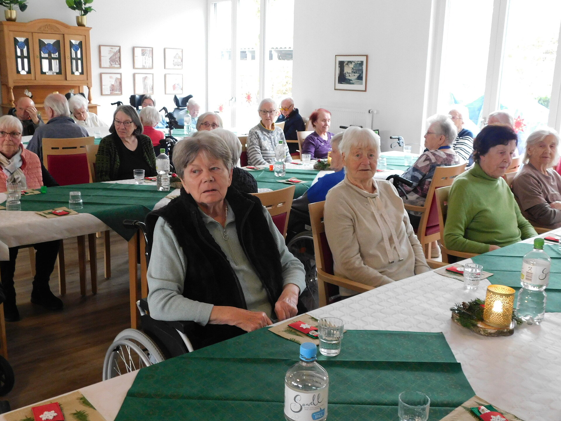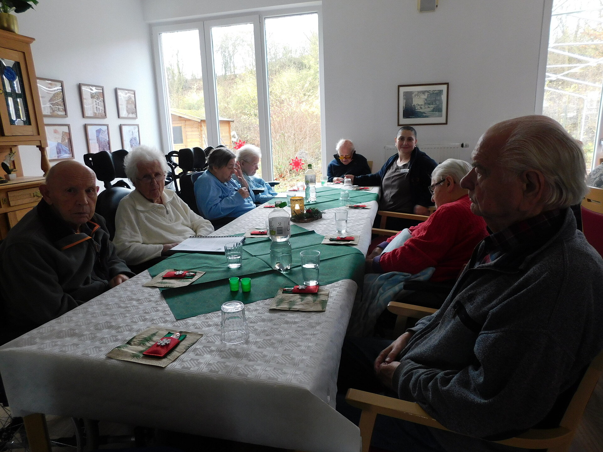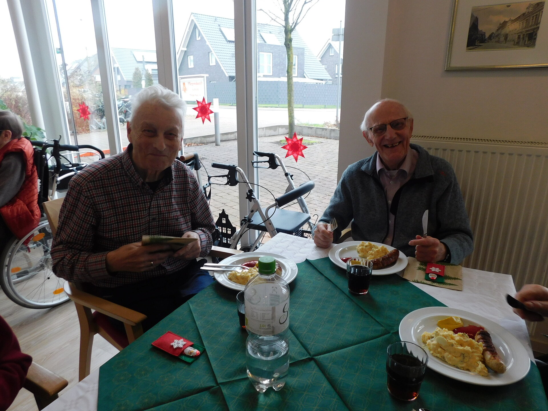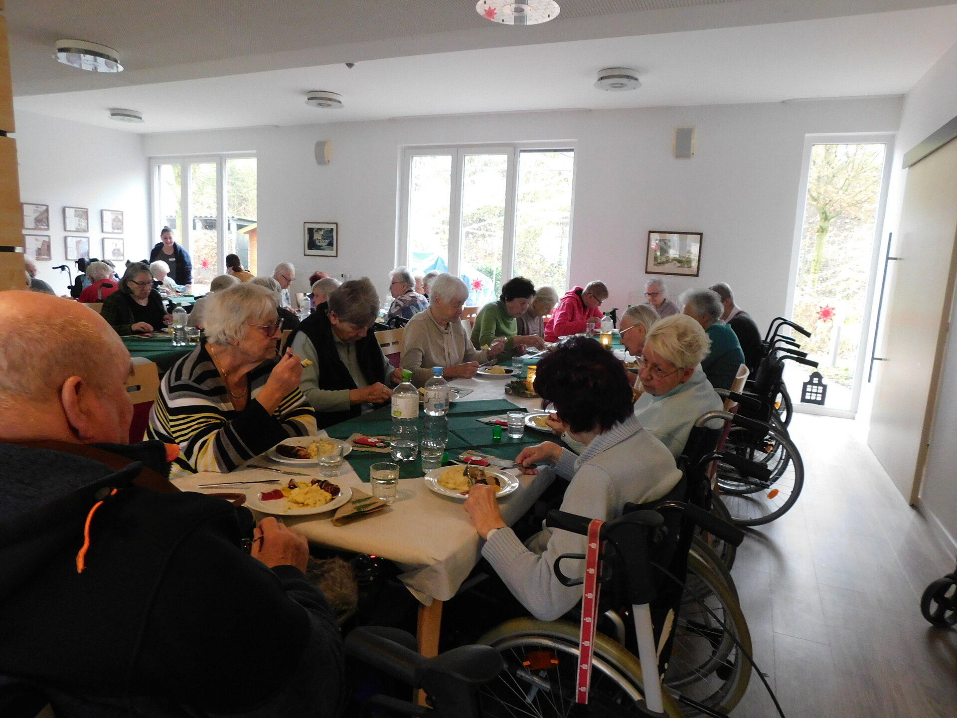 Nachdem die soziale Betreuung mit den Bewohner und Bewohnerinnen wunderschöne alte, besinnliche Weihnachtslieder sang, kümmerte sich das Küchenteam um das kulinarische Wohl. Bei leckerer Bratwurst und hausgemachten Kartoffelsalat genossen wir das beisammensein und bereiteten uns so auf das Nikolausfest und den 2.Advent vor.