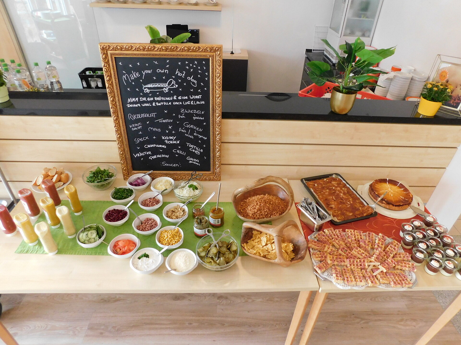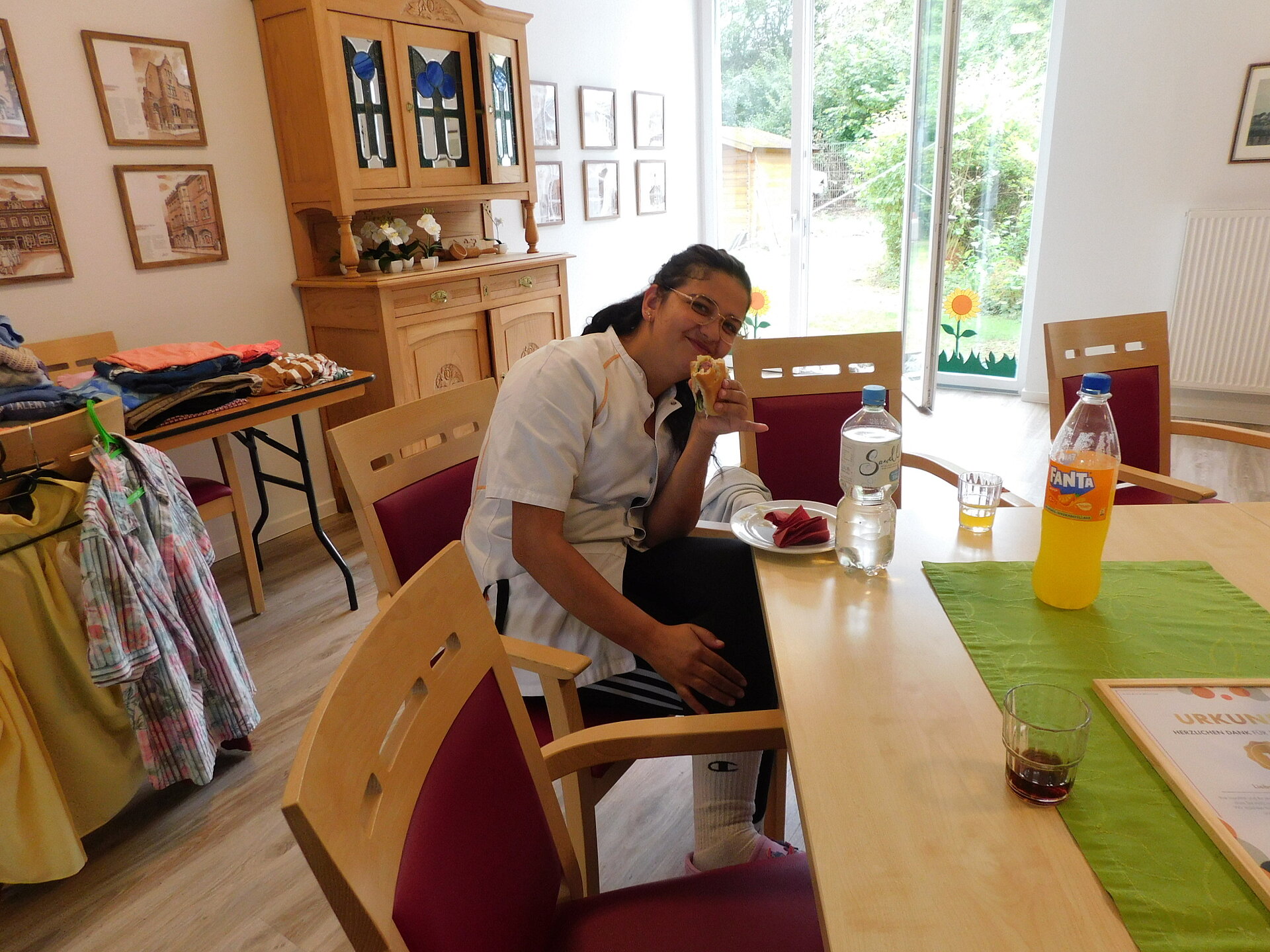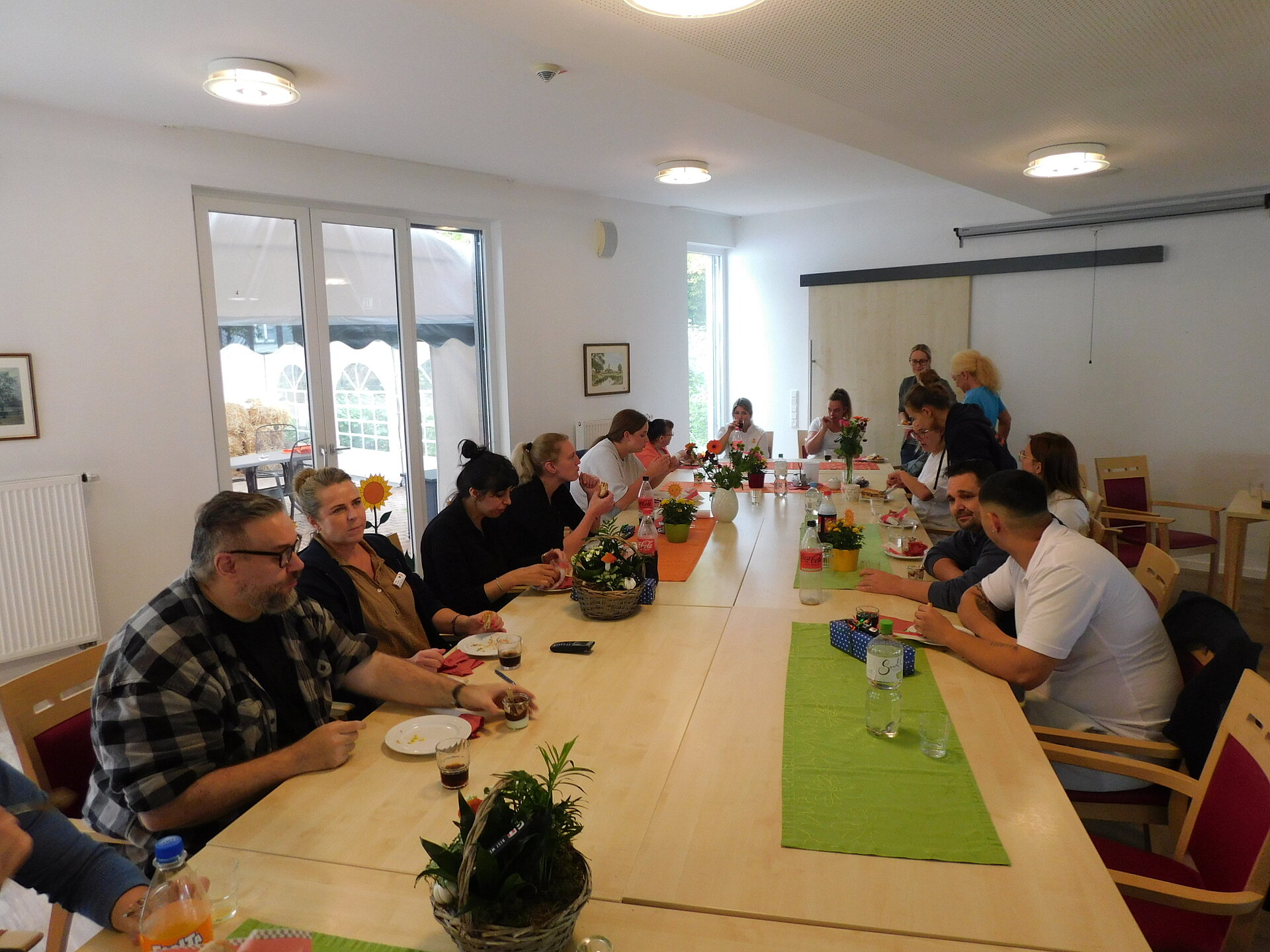 Am frühen Nachmittag ging es zu unserem großen Quartals-Mitarbeiter-Essen. Die Pflege, Sozialer Dienst, Küche und viele mehr kamen zusammen und haben an einem bunten Buffet mit Hotdogs, frischem Gemüse und leckeren Soßen geschlemmt. Dazu wurden Geburtstage nachgeliefert, Urkunden und Zertifikate feierlich übergeben und schöne Geschenke überreicht. Ein ganz besonderer Dank an das tolle Küchenteam für die viele Mühe.