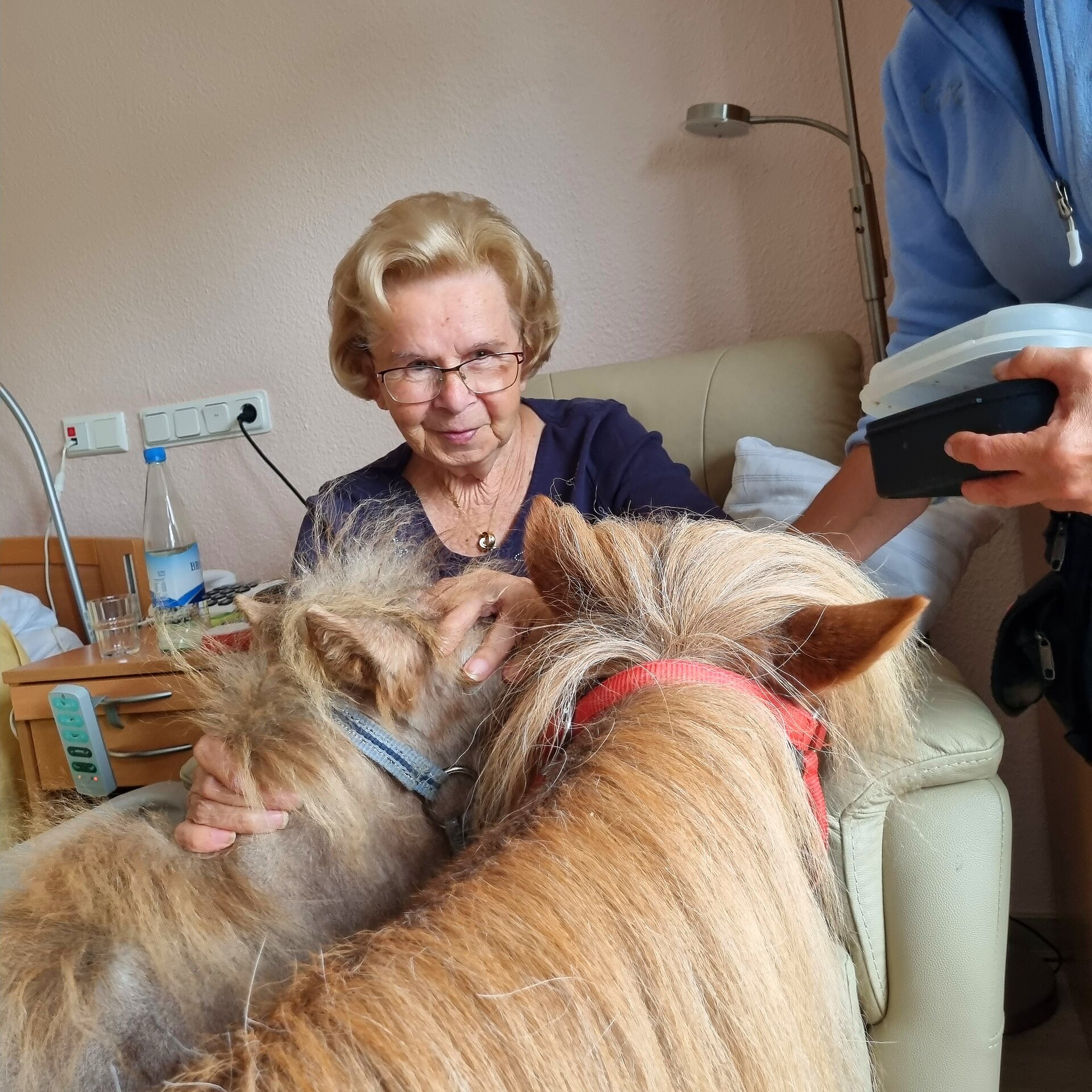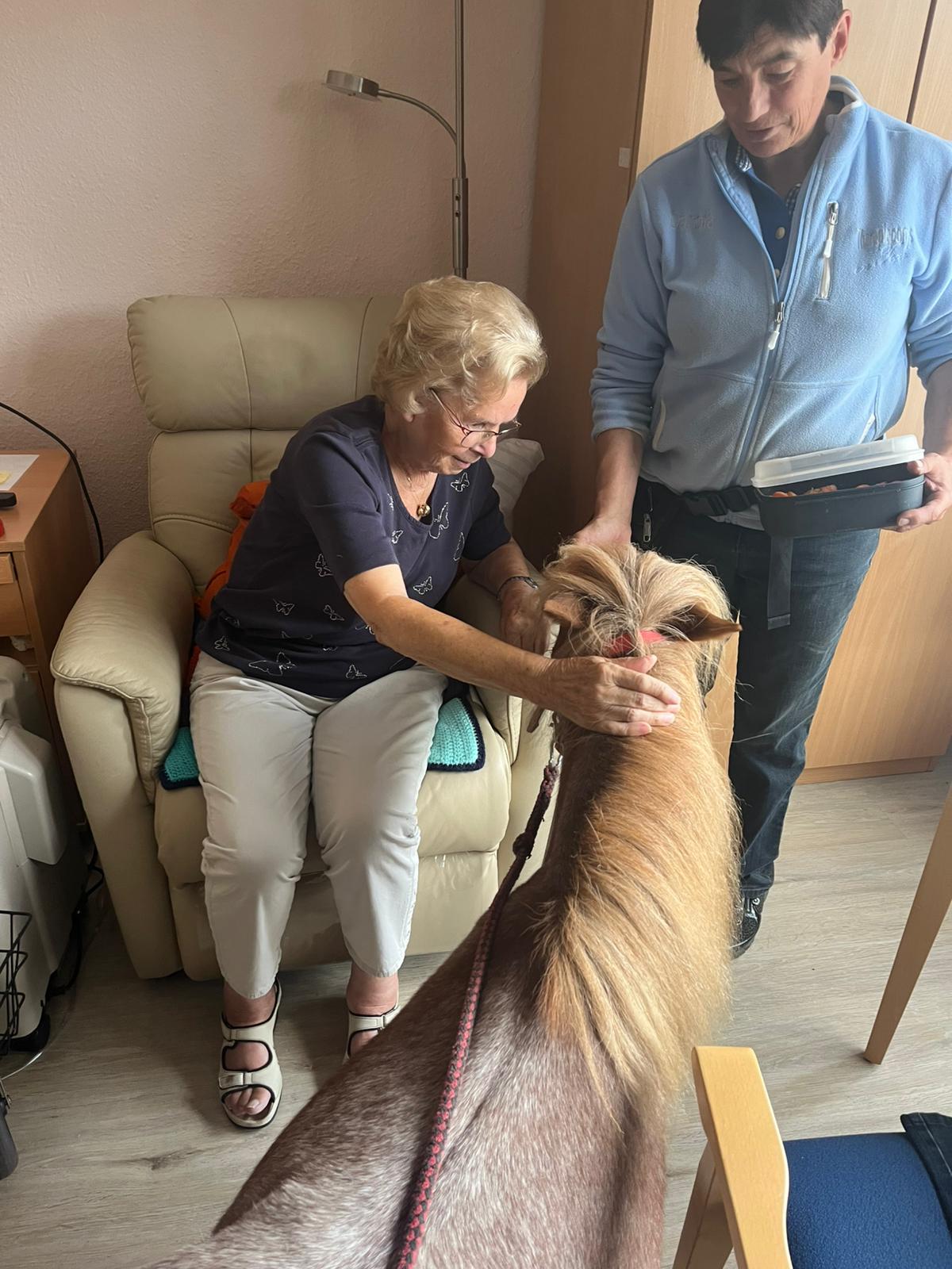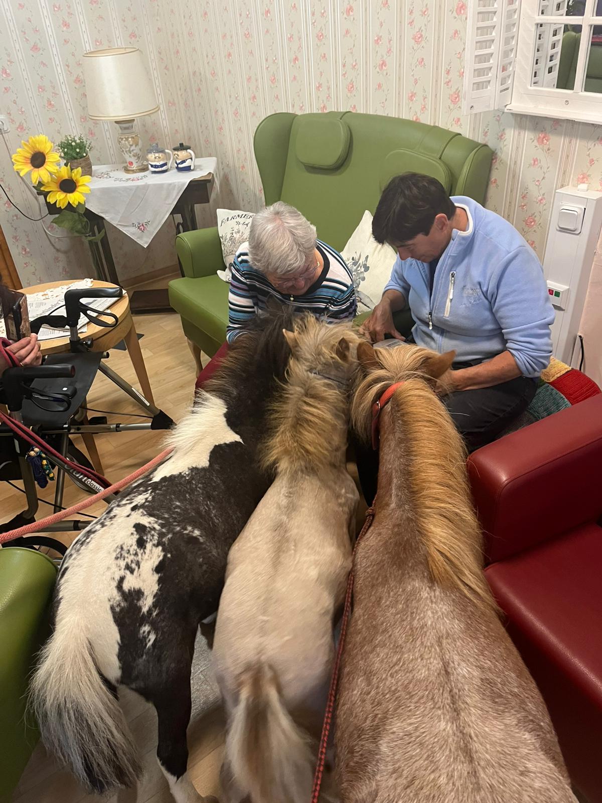 Unsere Bewohnerinnen und Bewohner haben sich riesig gefreut, die Ponys zu streicheln, zu kuscheln und sogar mit ihnen spazieren zu gehen.