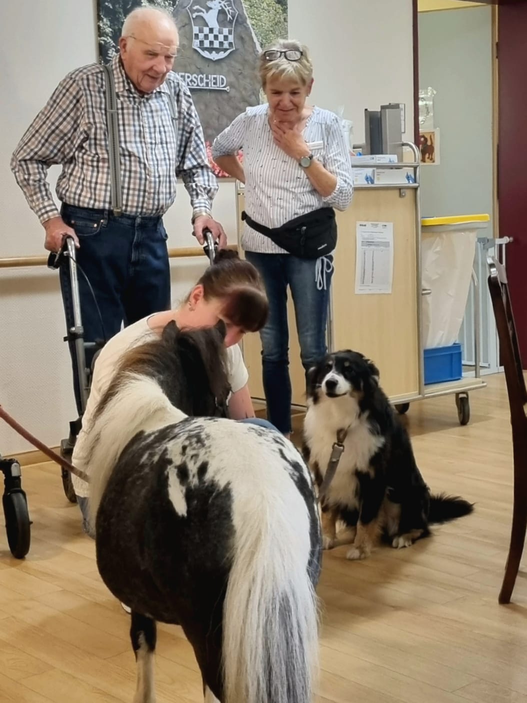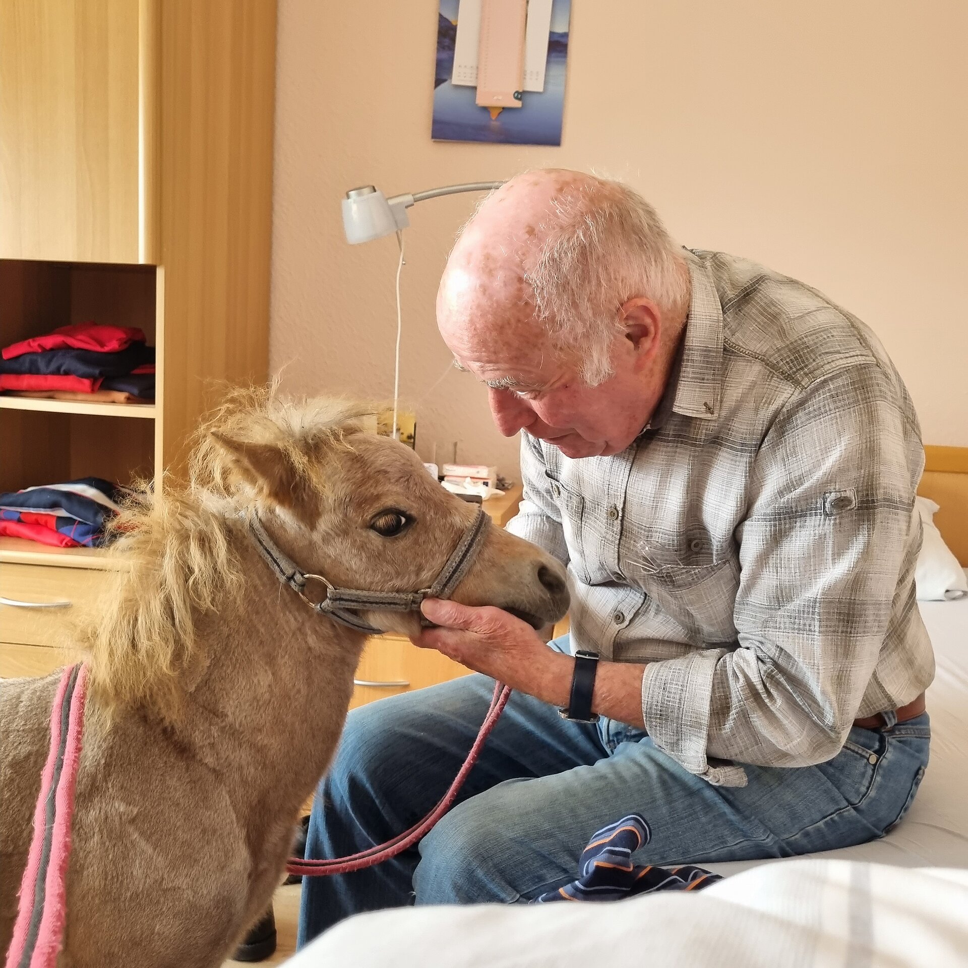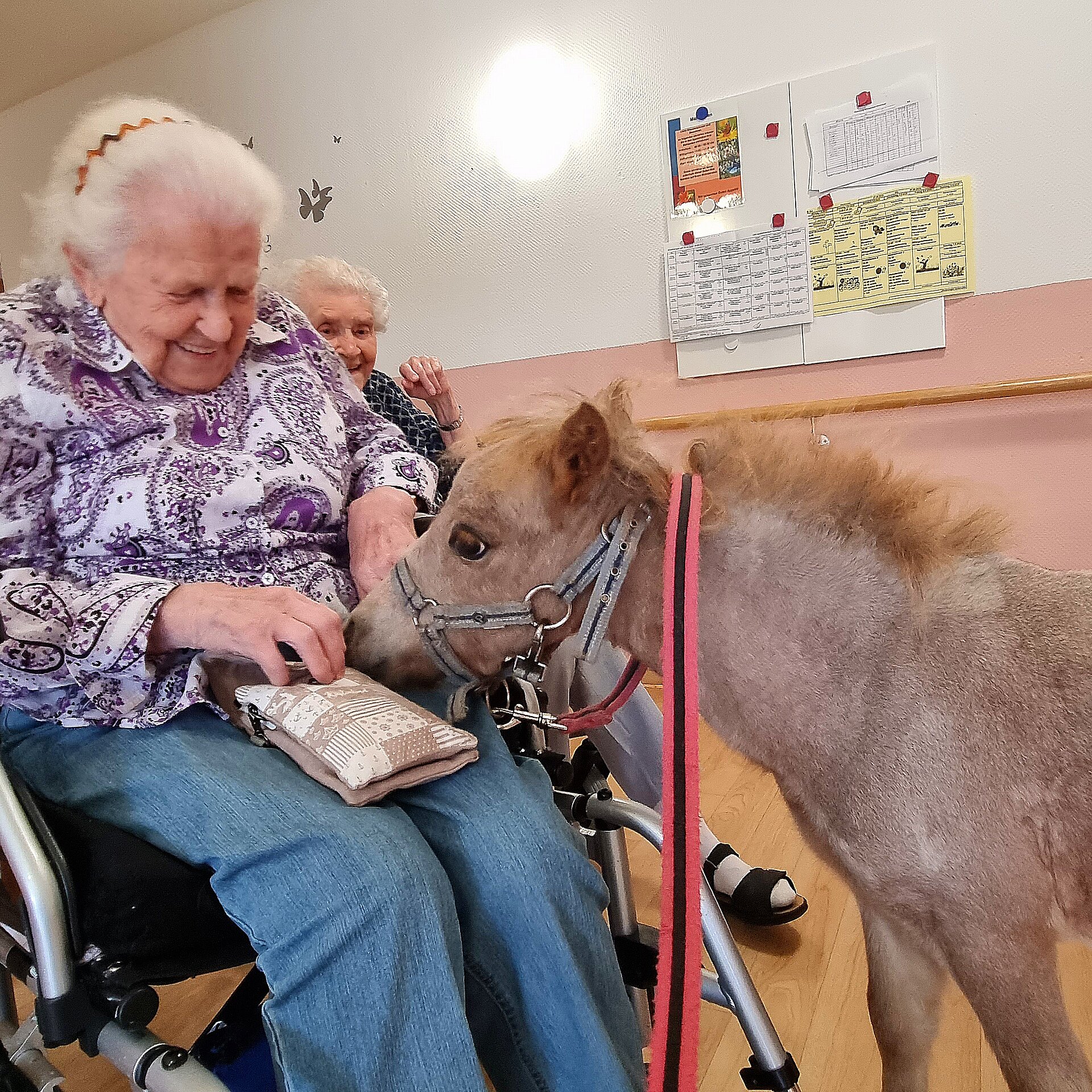 Unsere Bewohnerinnen und Bewohner haben sich riesig gefreut, die Ponys zu streicheln, zu kuscheln und sogar mit ihnen spazieren zu gehen.
