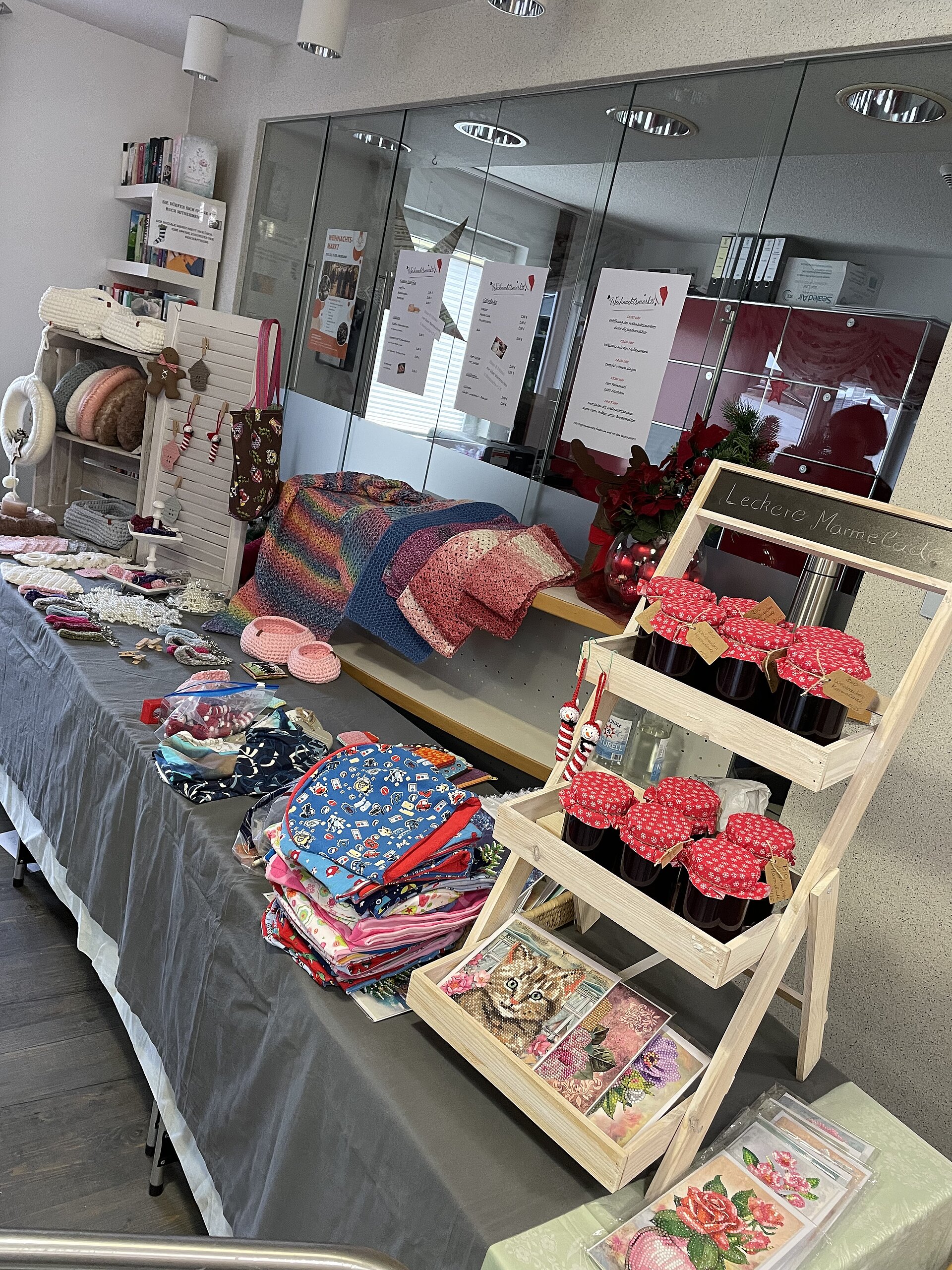 🎶 Bei Glühwein, selbstgemachten Leckereien und stimmungsvollen Darbietungen konnte an vielen Ständen gestöbert werden. Holz, Gestricktes, Genähtes, Deko aus Gips, Schmuck, Seife, Kerzen, Käse, Honig… die Auswahl war einfach riesig.